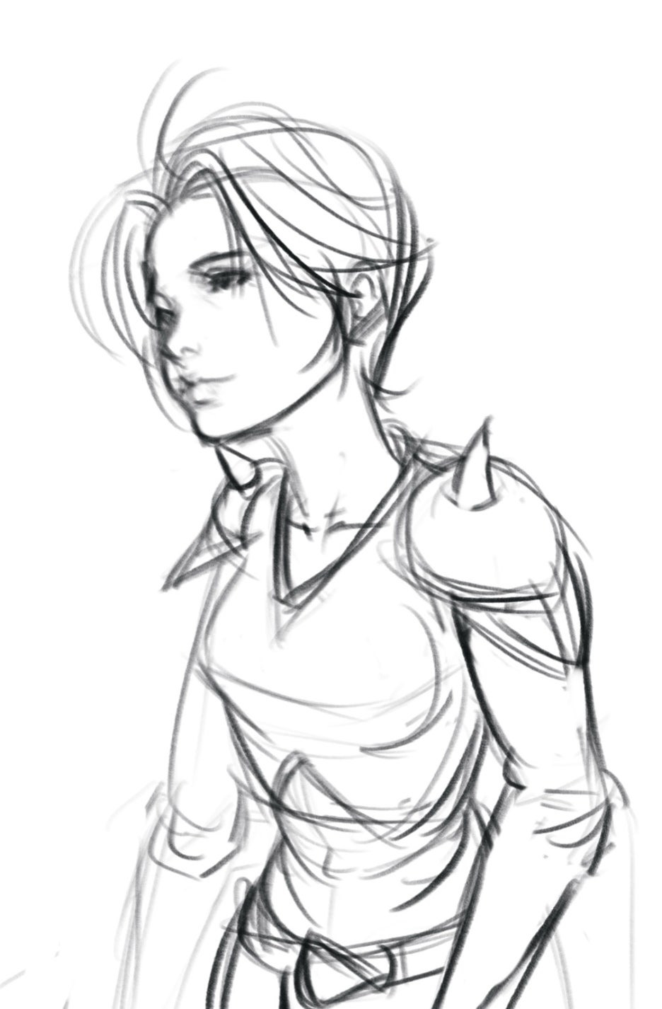세밀한 얼굴 윤곽과 높은 광대뼈, 단단한 턱선을 가진 여성 전사가 정면에서 약간 비스듬히 선 모습.